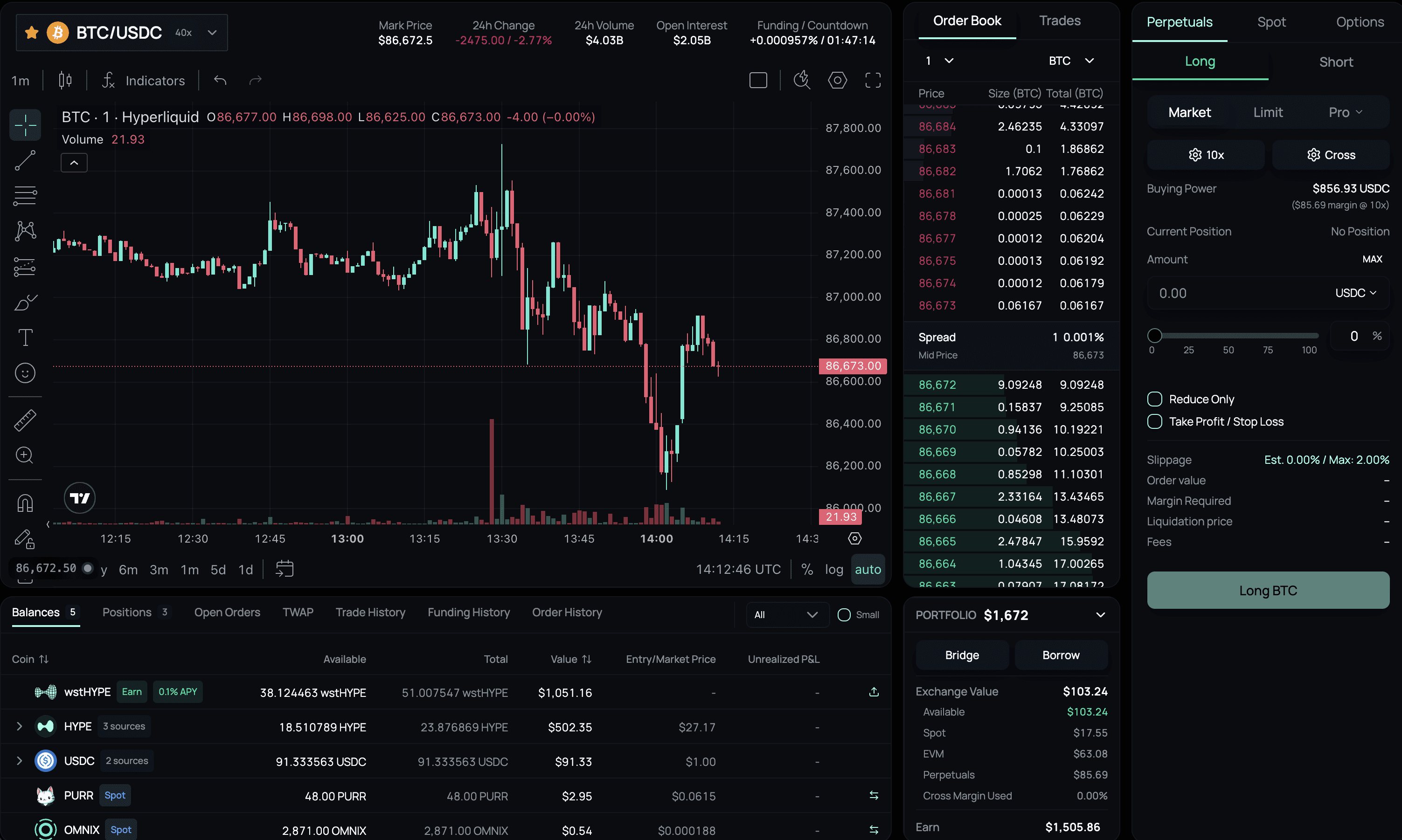 Trade crypto and Bitcoin futures perps and spot, earn in DeFi lending, and spend with your HypurrFi credit card without selling crypto.